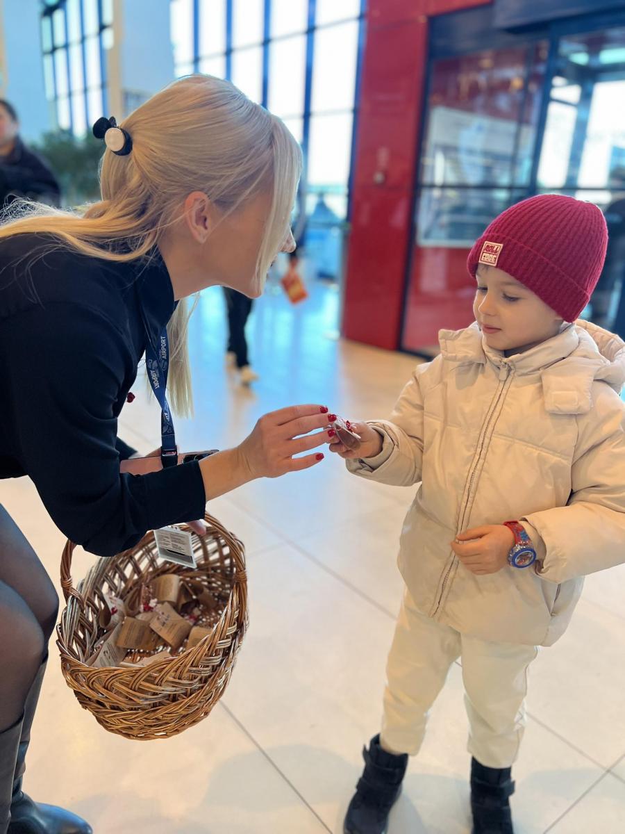 Atmosfera de sărbătoare a fost completată de simbolul primăverii – mărțișorul. Am oferit mărțișoare pasagerilor, ca gest de bun venit, speranță și reînnoire. Fiecare mărțișor dăruit de aeroport a fost și o rază de speranță pentru cei care au nevoie: o masă caldă a ajuns la o persoană dintr-o cantină socială, transformând acest gest într-o șansă la o viață mai bună.