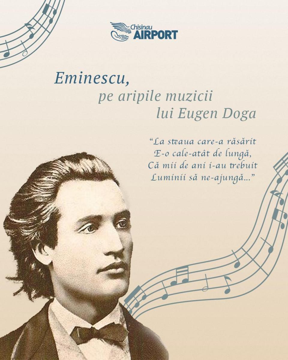 Aeroportul International Eugen Doga - Chisinau poarta numele unui compozitor care a stiut sa asculte poezia dincolo de cuvinte. Un artist care a simtit in versurile lui Mihai Eminescu nu doar literatura, ci muzica  in fiecare litera, in fiecare sunet.