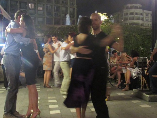 O, ce frumoasă seară am avut-o azi. Pe platoul în fața Casaei Armatei în centrul Bucureștiului pe Calea Victoriei! a fost o petrecere exstraordinară cu dansuri în ritm de tango sub genericul ”La Longa”. Ea se petrece în fiacare joi la care participă nu numai membrii echipei LA LONGA, ci și foarte multă lume din afară.Eu venit în București pentru pregătirea concertelor, care au să se petreacă încurînd aici, am primit invitația domnului Sorin Matei, a unui mare dansator,pasionat de tangourile argentiniene, organizatorul și sufletul acestei frumoase manifestări. Și, ca de obicei, mi-a făcut și o surpriză. Eu stăteam neobservat la o parte de terasă, când colo el a pus să cânte nu un următor tango, după cum se cuvenea, dar valsul cu muzica mea ”Gramofon”.