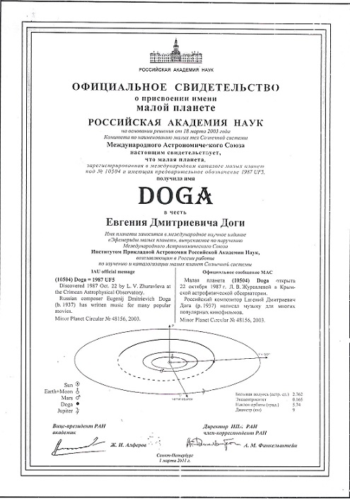 А ещё где-то в космическом пространстве Солнечной системы плывёт планета №10504, названная именем Маэстро DOGA.