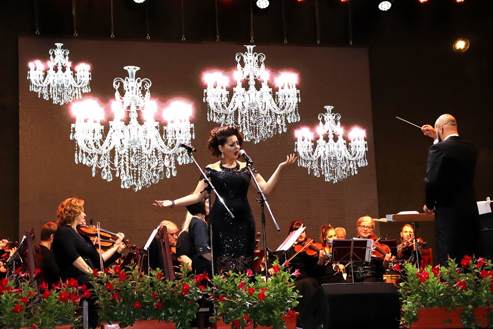 „Bună seara, Vaslui! Mă bucur că sunt aici! Vă mulțumesc că ați venit!”, le-a spus maestrul Eugen Doga l-a intrarea în scenă vasluienilor care l-au aplaudat îndelung, după care Piața Civică din centrul orașului a fost inundată de muzica poetică și luminoasă a compozitorului. Alături de maestru, ca și în multe alte spectacole au fost prietenii săi, soprana Mariana Bulicanu, recenta deținătoare a Trofeului „Maria Bieșu”, la Chișinău, actualmente, solista Operei Române, Craiova, soliștii Dumitru Mâțu, Veaceslav Timofti, soliști ai Teatrului Național de Operă „Maria Bieșu”,  virtuosul acordeonist Vitalie Advahov, acompaniați de Orchestra Simfonicã a Companiei „Teleradio-Moldova”, dirijor Dumitru Cârciumaru. O apariție în premieră în spectacolele maestrului Doga a fost cea a tinerei Anisoara Bragari-Morosanu, studentă la Centrul de Excelență în Educație Artistică „Ștefan Neaga” din Chișinău, semn că noua generație de talente a preluat cu gratitudine și mândrie opera compozitorului Eugen Doga.