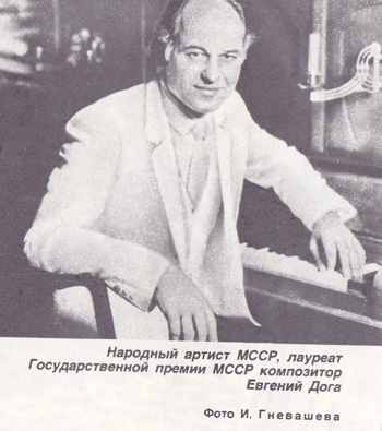 "И как это произошло так прекрасно, что вы и кино нашли друг друга?" (из письма Л. Мягковой, Гродно). А иначе и не могло случиться. Ведь Евгений Дога родом из Молдавии. К десяти годам он был переполнен мелодиями, что пела мама и играл на скрипке деревенский музыкант-лаутар. Потом он сам собрал единственный на все послевоенное село радиоприемник и настраивал его на разные волны— слушал музыку разных широт, пытался записать ее, причем сам изобрел систему нотной записи, в чем-то похожую на современную кардиограмму. О том, что подобная система существует много веков, узнал позже...