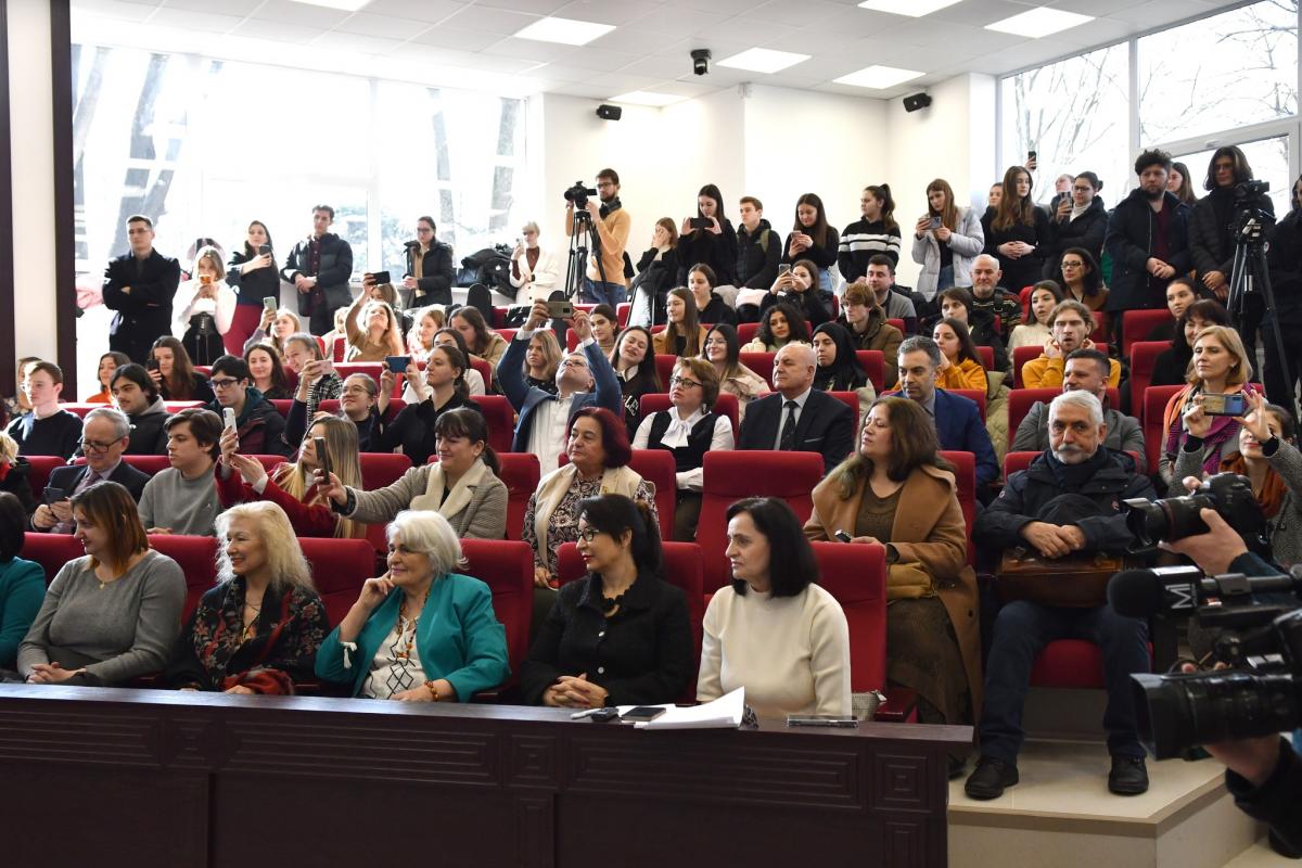 Aula “Regina Maria” a Universității de Stat a R. Moldova a fost arhiplină în ajunul sărbătorii românești dedicată iubirii, Dragobete. Invitatul de onoare al evenimentului, grație căruia s-a strâns atâta lume, a fost compozitorul Eugen Doga. Maestrul le-a vorbit studenților și profesorilor despre viața și cariera sa, iar la sfârșit le-a semnat autografe și s-a lăsat fotografiat împreună cu doritorii.