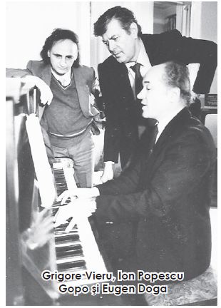 Eugen Doga: Eu am avut un mare noroc să-i cunosc, să colaborăm şi să învăţ de la oameni  cu harul lui Dumnezeu, valori autentice care nu mai sunt printre noi. La începutul începuturilor au fost profesorii mei, Pablo Baccini, care mi-a insuflat dragostea de muzică şi muncă, compozitorul Solomon Lobel, care m-a învăţat să scriu muzică şi Marc Copîtman, care m-a iniţiat în arta polifoniei pe care se ţin pilonii şi edificiul unei partituri. poetul Gheorghe Vodă m-a invitat la primul film pentru care am scris muzică. Anatoli Badhen din Sankt-Petersburg m-a învăţat să iubesc orchestra şi să fiu artist. Regizorul Ion Popescu Gopo m-a orientat spre propriile mele resurse de creaţie pentru a le scoate la suprafaţă şi a cânta frumuseţea copilăriei în musicalul „Maria-Mirabela”. Celebrul Emil Loteanu, un poet romantic, un fantezist, un îndrăgostit şi un cutezător mi-a deschis porţile marilor universităţi cinematografice la care am studiat rolul muzicii în dramaturgia filmului. Marele Grigore Vieru m-a cucerit cu forţa sa poetică şi creativă. Pe versuri- le lui am scris foarte multe cântece care au avut şi mai au şi astăzi succes la public. Vieru şi Loteanu mi-au fost sursă de creaţie, de simţ artistic, artizanism  pe  încercări  serioase  în   arta comună. Cu ei am trecut traseele necunoscute de mine în ale creaţiei, asemenea lui Columb şi Magellan în drumurile lor pe mări, către ţinuturile ulterior descoperite. A fost o încercare spirituală puternică, care putea să aibă loc numai pornită de la marile talente sau de la marile forţe creative artistice, după cum erau aceşti doi trimişi ai Domnului în calea mea, dar şi pentru toată cultura românească şi cea universală.
