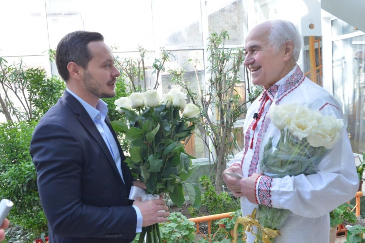Distinsul compozitor a primit flori și felicitări din partea primarului general interimar, Ruslan Codreanu, care i-a urat mulți ani, cu sănătate și să ne ducă şi mai departe faima în lume, prin creaţia sa.