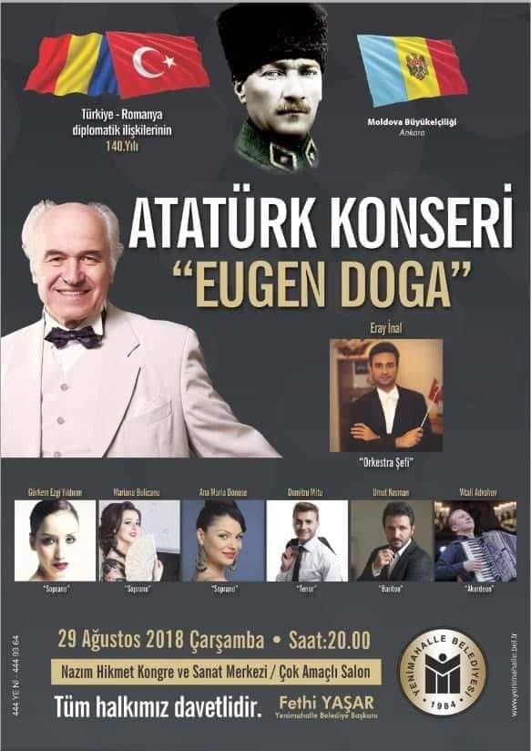 Eugen Doga’nın Ulu Önder Mustafa Kemal Atatürk için bestelediği eserini ilk kez seslendireceği ve Türk Milleti’ne hediye edeceği konsere tüm halkımız davetlidir.