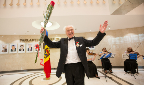 А в 12 часов утра в Парламенте Молдовы состоялся приём "Евгений Дога – 80-я весна", где открылась выставка фотографий, афиш и публикаций из личного архива маэстро и из архива Академии наук.