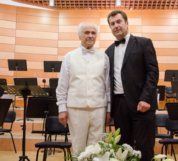 В филармонии Олтении, 12 сентября 2017 года, были на концерте Евгения Доги, величайшего румынского композитора из Бессарабии. Мы счастливы, что видели его, слышали его! Многие лета, маэстро! Проф. Алина Иосиф и Виорика Иовита